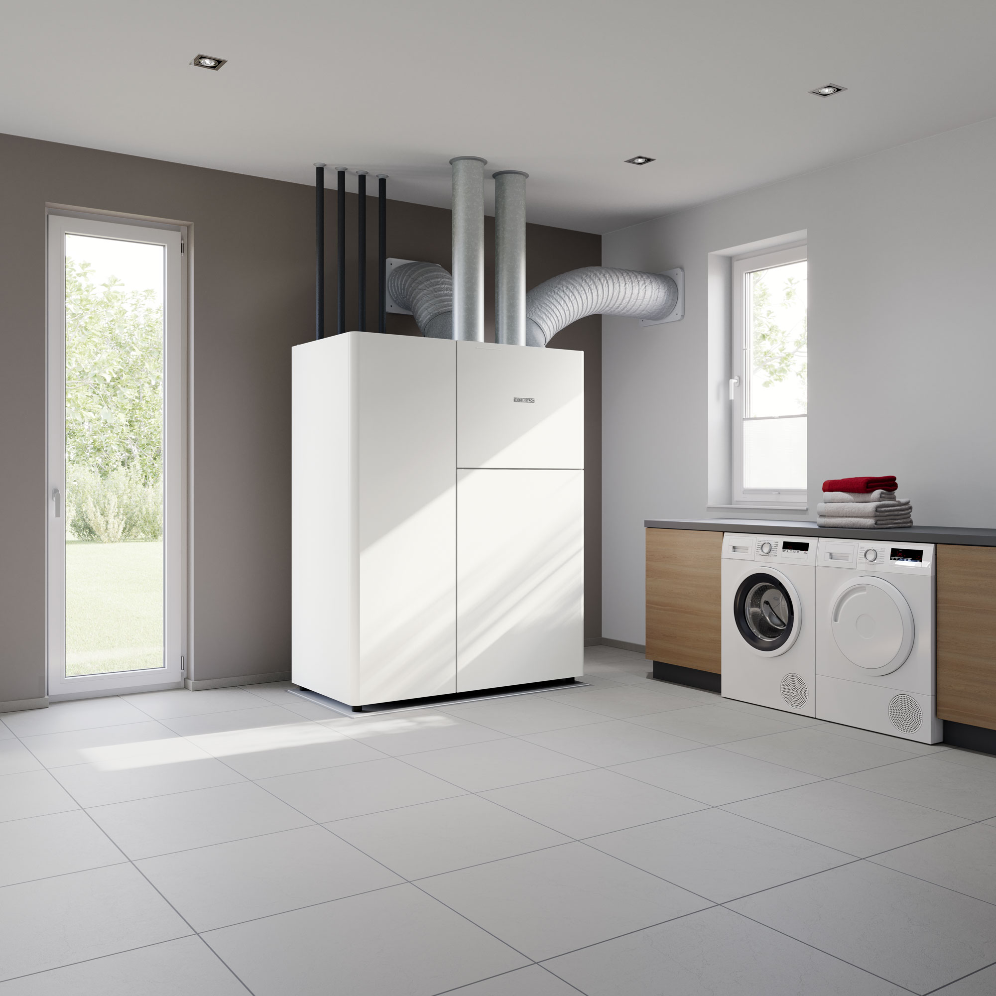 Die Idee der LWZ, alle haustechnischen Komponenten in einem Gerät zu vereinen, überzeugt heute genauso wie bei der Markteinführung vor 25 Jahren. Aber natürlich geht die Entwicklung bei STIEBEL ELTRON weiter. Die neue LWZ-Serie kombiniert fünf Funktionen in einem Gerät: Heizen, Kühlen, Warmwasserbereiten, Lüften und Luftreinigen. Das kompakte Integralgerät ist Innovation auf lediglich 1,1 m².